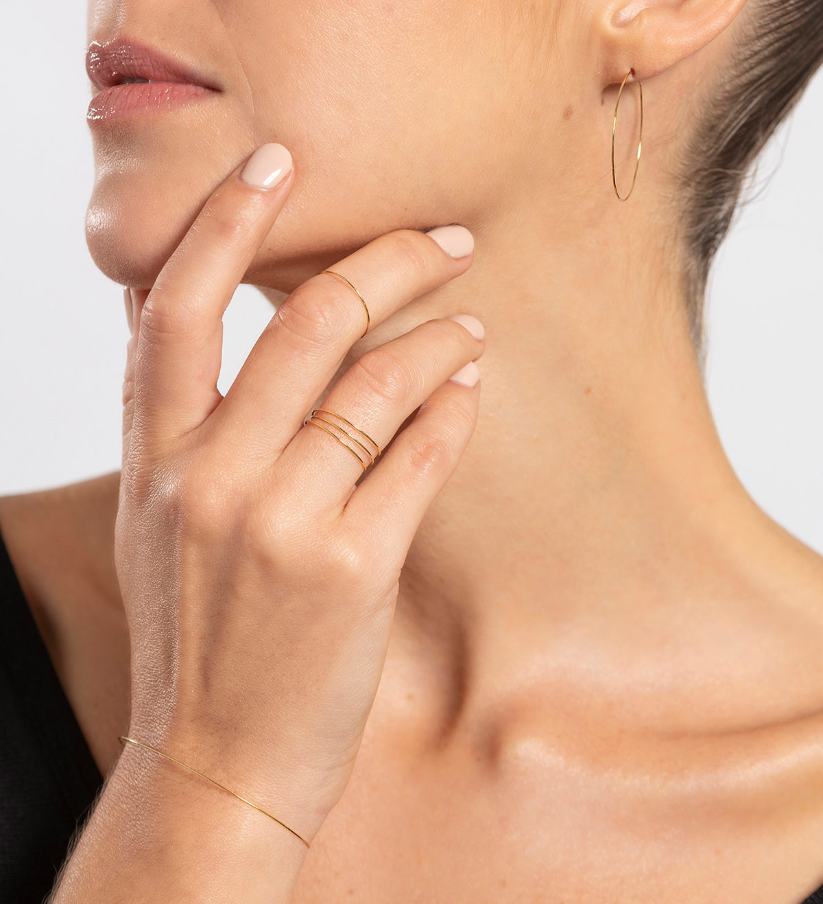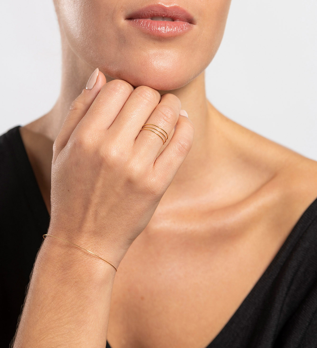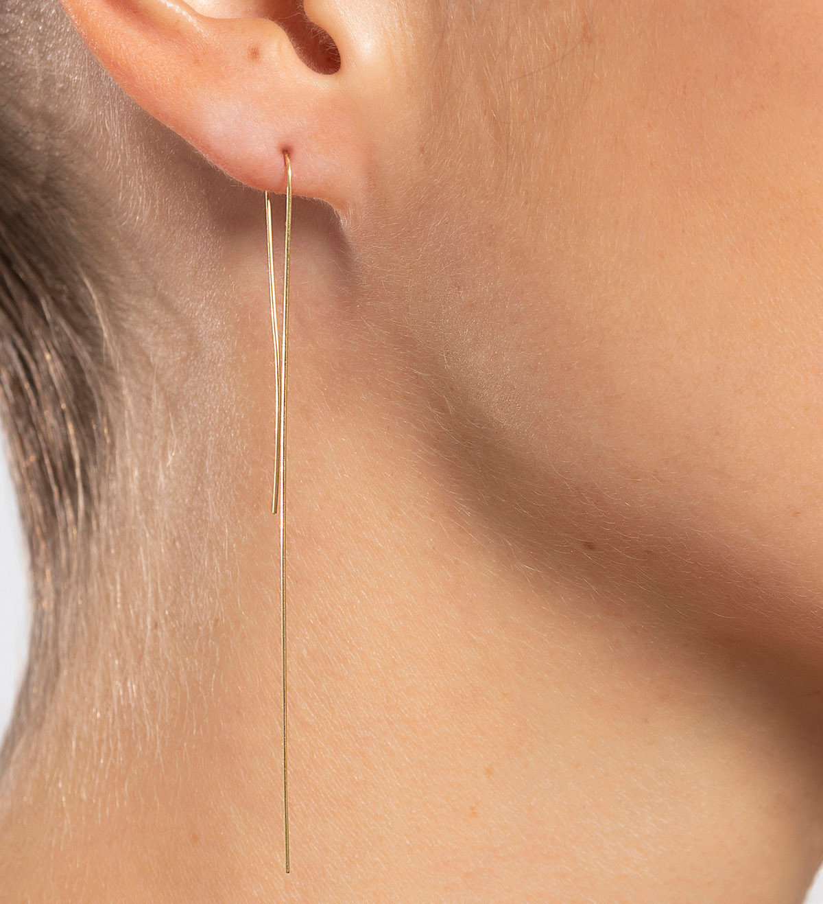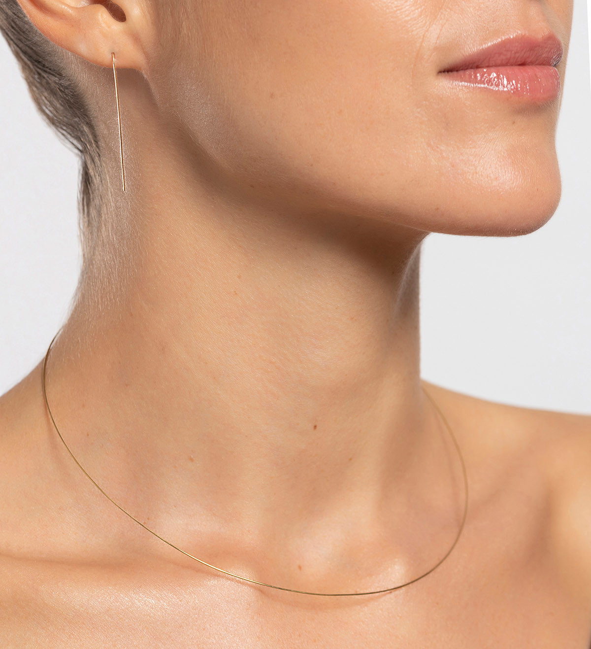 Brilla un hilo de oro entre los pliegues de la ropa, un reflejo dorado entre el cabello. La joya que no está; la belleza de lo que no ves, la elegancia de ocultar algo precioso. El adorno más sutil, la reducción a lo esencial.